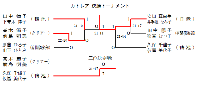 | 原薗 ひろ子 山下 ひとみ (有閑倶楽部) | × 13-21 | ○ 21- 6 | ○ 23-21 | 2 |