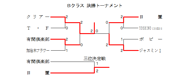 Bクラス 2ブロック | クリアー | 山田フォルテ | ジャスミンU | ポピー | 順位 |
